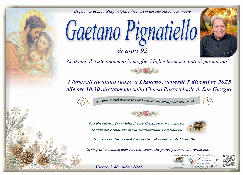 Il caro Gaetano sarà tumulato nel cimitero di Cantello.