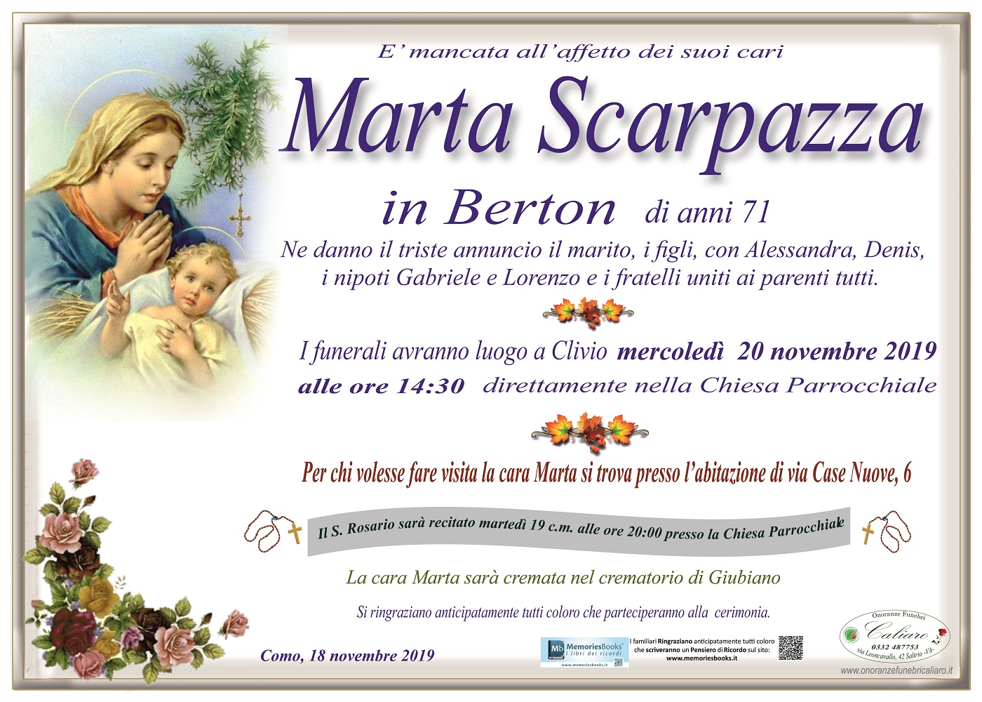 Da anni, l’impresa funebre si prende cura dei vostri cari defunti offrendo un ampio ventaglio di servizi attivi 24 ore su 24, in ogni giorno della settimana (festivi compresi). Lo staff saprà accogliere i famigliari del defunto presso la sede di Saltrio, in Via Leoncavallo 42, e dare loro quell’assistenza esperta che permetterà di gestire ogni aspetto della cerimonia funebre.