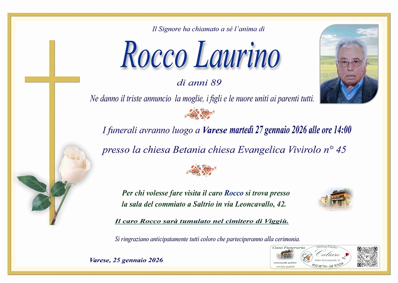 Il caro Rocco sarà tumulato nel cimitero di Viggiù.
