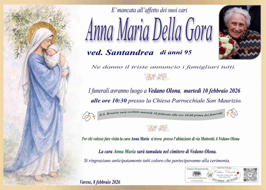 La cara Anna Maria sarà tumulata nel cimitero di Vedano Olona.