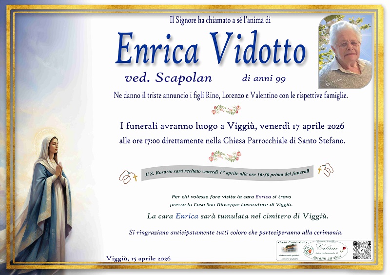 Il S. Rosario sarà recitato venerdì 17 aprile alle ore 16:30 prima dei funerali.